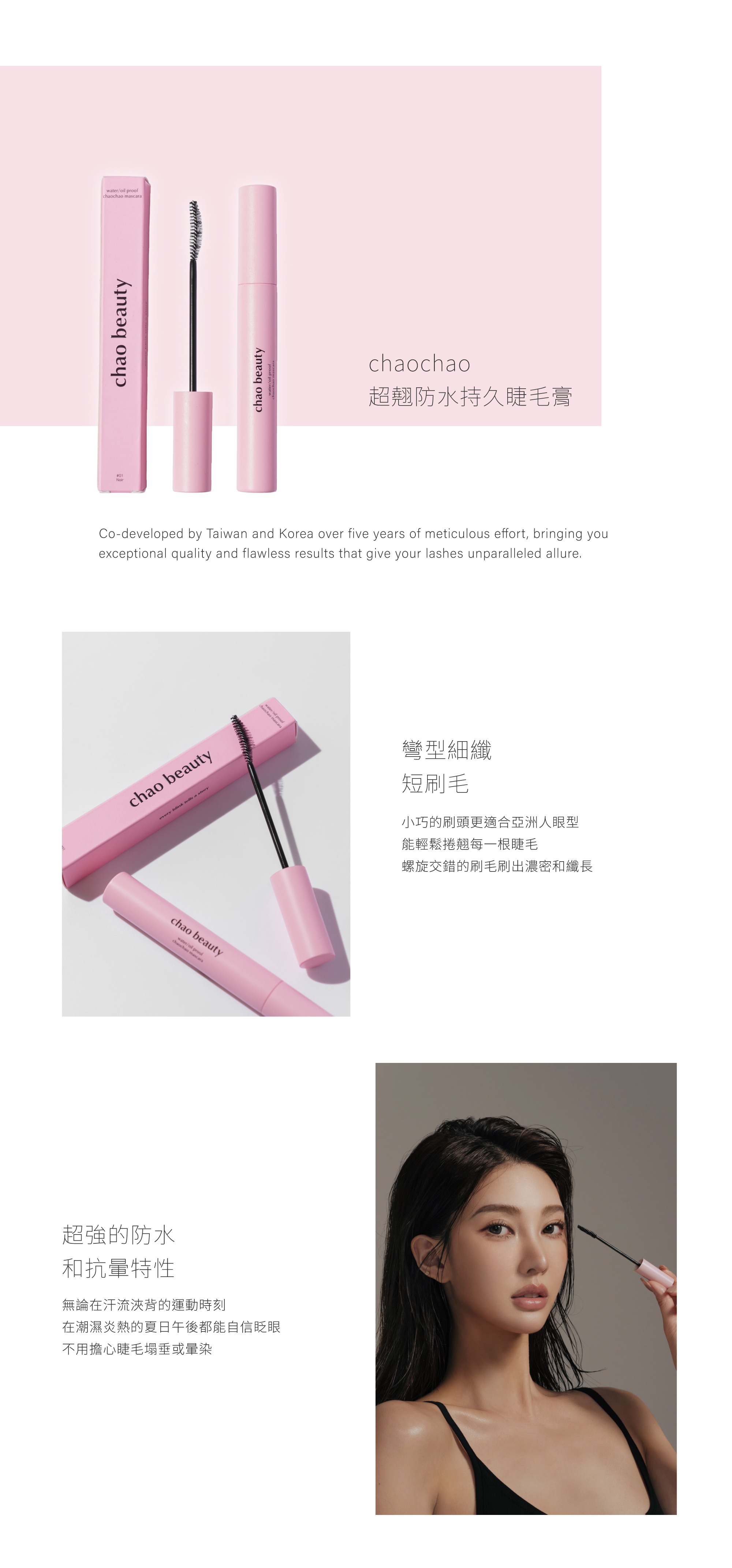 這款睫毛膏由台灣與韓國攜手研發,歷經五年精心打磨,呈現出卓越的品質與完美的效果,讓您的睫毛充滿無限魅力。採用長效持久的防水配方,適合全天候不暈染的妝容需求,特別針對亞洲人眼型設計,輕鬆打造濃密、捲翹的睫毛效果,使雙眼更加迷人動人。